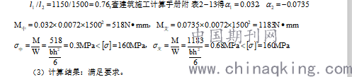 (2)计算过程:底部设置10根直径12mm的钢筋和一块14mm厚木板