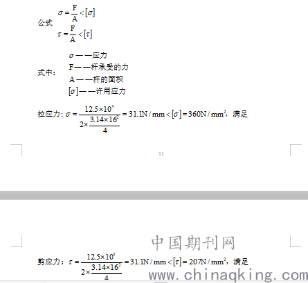 (3)计算过程:卡环的容许荷载为