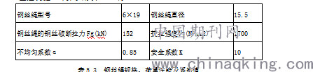 表5.3 钢丝绳规格、荷重性能及系数值