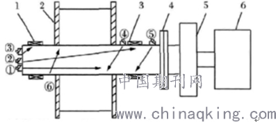 第一步:使用直型超声仪探头从轴端面开始对全轴进行贯穿检测,从两个方向对锻件检测,如果锻件的尺寸小,则超声波的探头可选用双晶直型,轴端面位于图中①处。