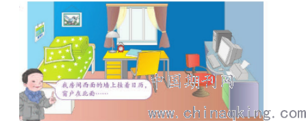 例如课本中的练习2(见图2),让学生描述一下房间内物品的布置情况。教师在对这一问题进行讲解时,一定要先让学生自己进行描述,然后教师再指出学生讲述时出现的问题,并予以改正。例如说学生甲在叙述书桌的位置时可能会下意识的说桌子位于中面,这是教师便需要给予纠正,让其明确错误出现的原因以及改正的方法。除此之外,还有部分学生在描述时可能会纠结椅子是位于东面还是西面的问题,进而展开激烈谈论,这时教师实际上不需要立即讲出正确的答案,而是进行适当的引导,为什么有的同学认为椅子在东面而有的同学却又认为它在西面呢?当学生进行了自主的思考之后,教师就可以为学生进行讲解出现这种问题的原因,即选的参照物不同所以表述的方式也不同,有些同学将床作为了参照物,所以椅子位于东方,而有的同学将电脑作为了参照物,所以判断椅子的方向是西方,同时教师还要进一步强调在描述位置时要突出参照物,最终让学生养成规范的叙述习惯。