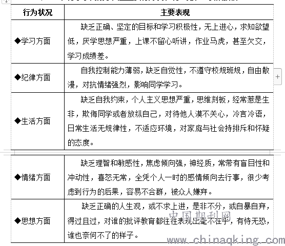 表1:农村小学高段学困生主要心理及表现一览表(仅限我校)