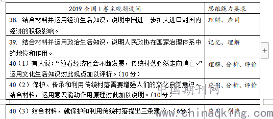 从近两年该省的主观题得分来看,我们可以看到:随着试题所要求的思维能力越高,考生也就越不容易得分,19年的得分情况比18年的略好,这也反映出随着培养核心素养理念的推广,教师们越来越重视思维能力的培养。