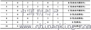 风力发电机齿轮箱是传动链的一部分,是风机中比较重要的部件。由于叶轮的直径比较大,一般的风速条件下,它的转速比较低,不能满足发电机发电的转速要求,通过齿轮箱的增速作用,使速度达到要求。统计数据显示,齿轮箱是风机中最出故障的部位本文将针对风力发电机齿轮箱的正常断齿曲面磨损轴承内圈损坏,轴承外圈损坏的五种典型工况,利用前面提出优化lessvm分类器进行故障模式识别分类。建立多分类lessvm模型A表示正常状态,Bcd和e分别表示断齿、齿面磨损、轴承内圈损坏和轴承外圈损坏的四种故障类型。在故障诊断的模型中第一层是用来判断风机齿轮箱是否工作正常的,第二层是用来识别风机齿轮箱的四种故障类型的。利用它们相对应通过风机实验平台得到一组特征参量,进行数的两个样本对每个分类器进行训练,实现对风机齿轮箱分析和归一化处理,得到表所示的10组待诊断轮箱的故障诊断。