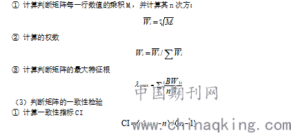 若计算随机一致性比例CR<0.1,即认为判断矩阵具有满意的一致性,否则就需要重新调整判断矩阵,直至满足一致性。