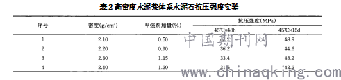 表2高密度水泥浆体系水泥石抗压强度实验