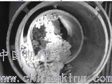 (1)增设观察孔。如果出现阴极冷却水泄漏时,煤粉在此处沉积,如果能够及时发现这一异常情况,对沉积的煤粉进行及时吹扫清除,可以避免此处煤粉燃烧造成结焦。为此,在燃烧器的弯头处增加一观察孔,此观察孔对准燃烧器的内筒位置,外侧可以通过法兰进行有效连接。通过观察孔可以对内筒进行有效监控。