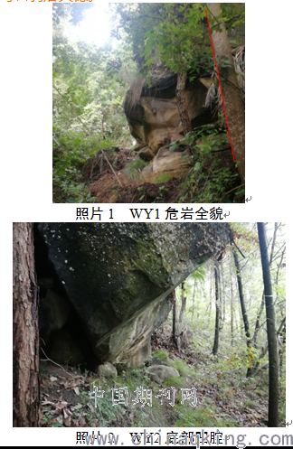 WY1:1、对危岩体WY1采用人工清危的方式进行清除。