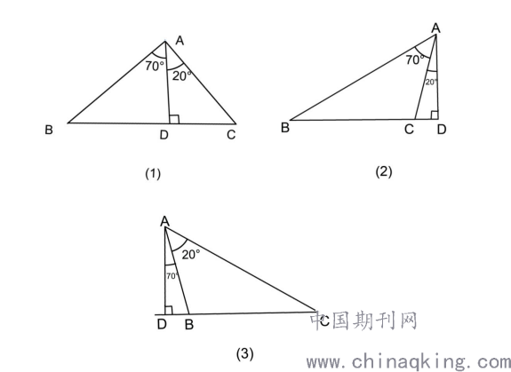 例2:已知:AD是△ABC的高,∠BAD=70°,∠CAD=20°