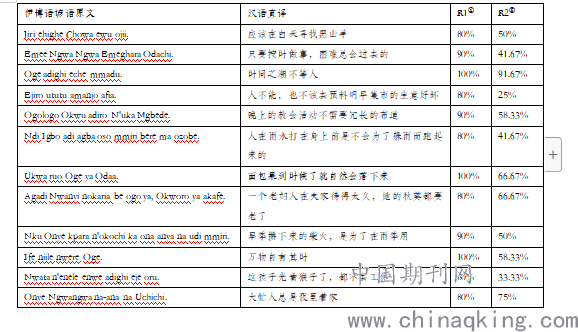 许多有着非洲跨文化交流经历的人,常常抱怨非洲人民对时间观念的漠视。而实际上,在许多非洲民族传统文化中,人们同样重视时间。谚语作为长久以来民族传统生活经验的语言载体,集中体现该民族价值取向与根本文化观念,可视为洞察某个民族文化特征的切入点。因此,笔者以“与时间相关的谚语”作为切入点,在西非尼日利亚东南部伊博族中进行了以下实验:从一名伊博母语者处征得25句他认为有时间观念有关的伊博谚语,而后将此25句谚语随机发给10名伊博母语者,让其对该谚语是否与时间相关进行评价,最后按80%同意率的标准,筛选出15句“与时间观念有关的伊博谚语”(每句谚语平均认同率为86.67%);再将这些谚语进行汉语直译,通过网上问卷软件,随机向12名汉语母语者进行认同度调查。结果在这15句谚语中,达到80%“有时间有关赞同率”的句子仅有1句,每句谚语平均认同率为51.67%。据此,我们推测:1、伊博人认为有时间有关的谚语,同样都存在将时间视作喻体的隐喻联系;2、伊博人认为蕴含了时间哲学的谚语里的隐喻,在以汉语为母语的人们看来,根本算不上“与时间相关”,或者可以说,其隐喻映射关系,在汉语母语者的隐喻概念体系中较弱或不存在。