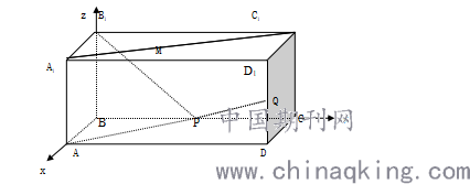 例题 长方体ABCD-A1B1C1D1中,AB=4,AD=6,AA1=4,M是 A1C1的中点,P在线段BC上,且CP=2,Q是DD1的中点。