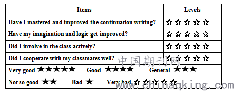 简评:笔者让学生对自己的读后续写故事进行自我评价。把学生好的读后续写故事展示在图书角,既让学生欣赏到别人的作品,找到与自己作品的差距,也让学生增强了自信心和自豪感,极大地增加了学习动力。