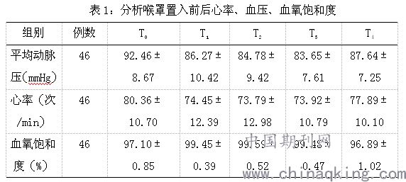 2.1 分析喉罩置入前后心率、平均动脉压、血氧饱和度