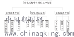 变电站是用来输电、配电和调压的枢纽。目前,我国常见的变电站主要设备是变压器和开关。变压器的工作原理是将变电站和母线上运行的高压电、大电流变成低电压、小电流。变电站的安全运行是保证电力系统正常运行的重要和关键环节,保证变电站运行的安全性就是保证电网运行安全。然而,变电站和变电技术在运行中可能出现的一些安全问题。根据相关文献研究及实践经验,总结出变电运行中常见的故障问题主要有三个大方面,且每个故障问题又包含有不同的故障类别,具体如图1所示。其中,变电技术主要包括变电技术工作人员在变电操作中操作变载技术的不熟练,直流回路操作,倒闸操作不规范等;变电设备方面主要包括变压器中的绕组引出线之间产生短路,输电线出现局部短路,与母线连接的组件之间发生了短路停电,断路器出现闭锁分合闸,电容器在使用中发生了外壳膨胀、液体外漏、套管破裂、温片松动脱落等;变电管理方面主要包括技术人员不规范地操作、未及时发现工作异常等人为操作失误,设备硬件的磨损、老化等未得到及时的修复和维护,安全管理条例的不完善、安全制度管理实施的不到位等。