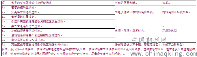 变压器温升试验、过电流试验和运行现场,常见的油箱结构件发生过热现象的梳理如下表 1: