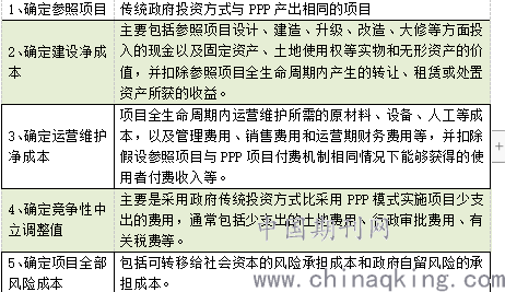 PSC值由参照项目的建设和运营维护净成本、竞争性中立调整值、项目全部风险成本三部分构成。其主要计算过程如下表所示: