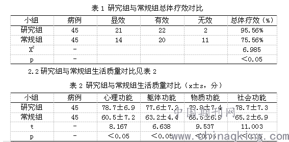 2.1研究组与常规组总体疗效对比见表1
