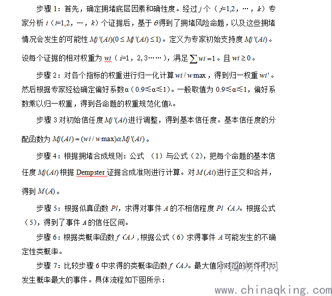 在评价中,从专家给出各个因素造成拥堵的相信程度始,然后由拥堵证据合成规则逐层合成,最后得到量化值。下面给出具体算法。