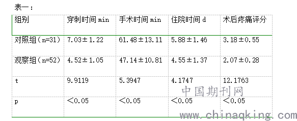 采用儿童疼痛行为量表对患儿疼痛程度进行评定,从0-10分,分数越高表示疼痛程度越严重。同时,观察统计患儿穿刺时间、手术时间、术后疼痛评分、住院时间及并发症情况。