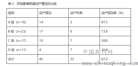 2.2分析比较四组患阴道试产情况