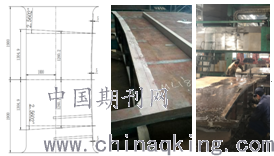 3.1.2锚室横向角度控制:一个锚室分别有3个不同角度,为保证锚垫板的空间坐标及角度,锚拉板数控下料时,预留+5mm机加工余量,在预制锚室单元件时,对锚室整体画线,组拼、焊接、调校后,进行整体机加工,确保3个锚室的横向角度,如图7所示。
