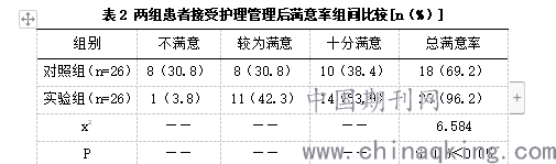 表2 两组患者接受护理管理后满意率组间比较[n(%)]