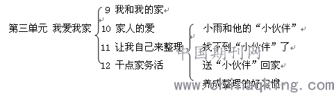 以一年级下册第三单元“我爱我家”主题第11课中“小雨和他的‘小伙伴’”为例,该课题在文本中的地位是这样的: