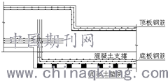 在靠近围护结构的支撑端部预埋止水钢板,止水钢板错位布置,为避免支撑钢筋碰止水钢板,在需预埋钢板的支撑部位设置一圈混凝土突起。在底板设置伸缩缝并做好相应防水措施[4]。