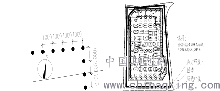 应力释放孔按梅花形布置,来减少地基土体的变位置及其影响范围,可减少场地周边环境影响,由于应力释放孔有利于地基土体应力的集中及孔隙水流向,根据经验其影响范围一般为2.5~3.0倍孔径,而孔隙水挤土作用主要影响⑥层以上粘土层。综合以上因素考虑确定。