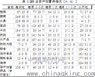 妊娠是一个极其复杂的过程。孕妇的营养状况不仅关系孕 妇自身的身体健康,而且对胎儿的生长发育、出生后的健康,以 及成年后的疾病发生都有明显的关系[1]。为了解妊娠期饮食 行为及营养状况对妊娠结局的影响,我们进行了此次调查。