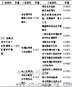 3.2.3 Z15深基坑项目中地下连续墙施工质量评价模型及权重