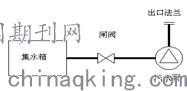 (2)密闭式污水提升装置设置由一体化集水箱、潜污泵、控制箱、水箱液位控制计、进水管闸阀、管接件等组成。水泵必须与集水箱分开设置,中间连接管上加装闸阀,采用单极干式、卧式或立式安装、易拆卸的水泵。其示意图如下: