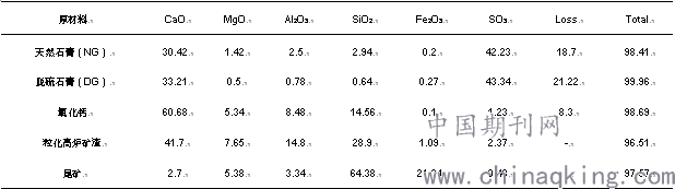 天然石膏:主要矿物CaSO4·2H2O,比表面积375m2/kg;