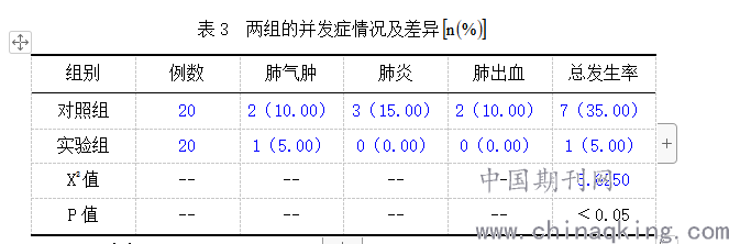 表3 两组的并发症情况及差异