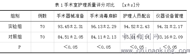 调查与统计发现,实验组患者的手术器械准备、手术消毒麻醉、仪器设备管理、护理人员配合等护理质量评分均比对照组高,数据差异存在的统计学意义(P<0.05),如表1所示。