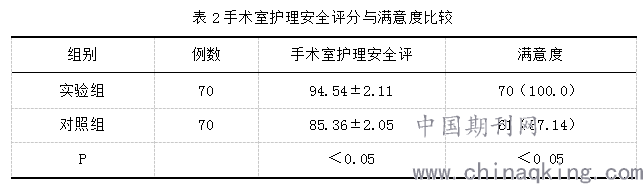 2.2手术室护理安全评分与满意度比较