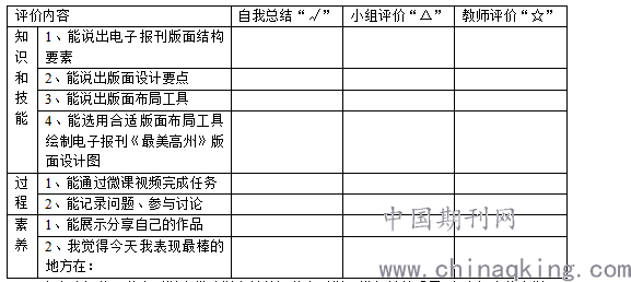 分享评价环节是学生经过了自学和协作学生之后展示收获的环节。在课前,教师和学生根据教学任务制《3.1.3报刊类文本信息的加工与表达》总结评价表如下所示: