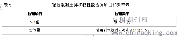 8.1 碾压混凝土性能检测项目和频率