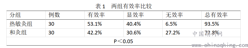 本临床试验于2019年11月-2020年12月在晋中市中医院针灸科完成。在晋中市中医院面向广大符合入组要求的面瘫患者,严格掌握纳入和排除标准,共收集60例病例,随机分为热敏灸组和温和灸组,每组各30例,进行研究观察。