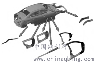 (2)加强多车型同平台焊接加工的制造品质。现阶段,汽车的钣金生产质量和焊接水品对汽车后续的装配工艺和整车的最终品质影响很大,因此在确保车身自动化焊接效率的同时也必须要提升焊装的尺寸精度,图1为车身焊接部分任务及零件组成结构,可见焊接步骤复杂,工序较多。因此,优化焊接过程中的精度控制技术,并对焊接过程的标准化和模块化装备进行升级,通过高精度数控手段提高焊接制造的实际品质。