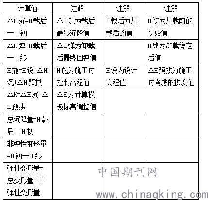 根据计算式计算出具体数据,并调整箱梁底板模板的高度,箱梁其他部位的标高以箱梁底板模板的标高为基准控制。