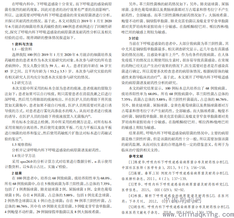 呼吸内科下呼吸道感染的病原菌谱及耐药性分析-