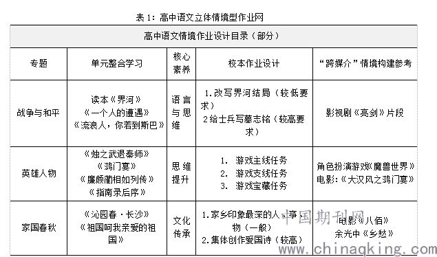 立体情境型作业是指在作业中以立体化的多样情境任务作为主要载体,让学生在个人体验、社会生活和学科认知特定的环境中完成不同的学习任务,以呈现学生语文素养的多样化表现。立体情境型校本作业的设计是在各层次的学生都能找到自己的“归属”的基础上进行。高一、高二 语文备课组尝试开展了一系列立体情境作业的设计,并在教学中实践,试图打破常规作业,通过情境作业提升学生的语言建构能力、思维能力、审美能力等。