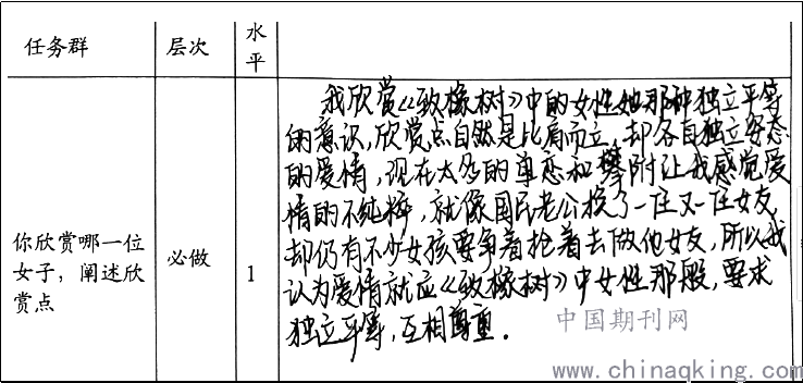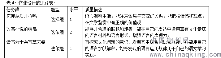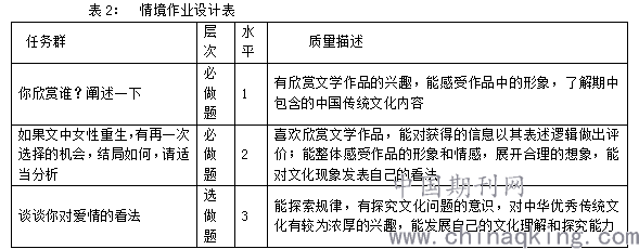 高中语文课程标准(2017年版)明确学业质量标准是以本学科为核心素养及其表现水平为主要维度,结合课程内容,对学生学业成就表现的总体刻画。学业质量标准明确将学业质量划分为不同水平。因此校本作业的设计和布置应针对学生不同的学习层次,给学生更大的选择余地。