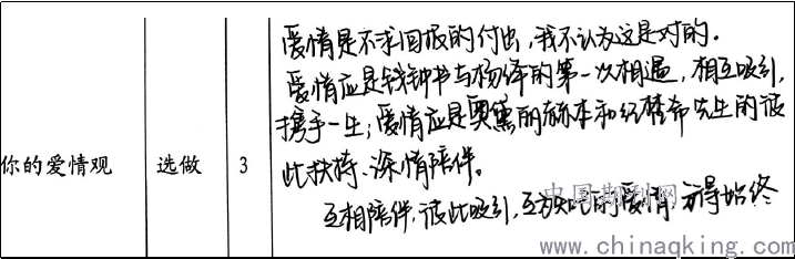 情境作业设计时巧妙地将学生当下青春洋溢的实际生活情感联系在一起,爱情是学生特别敏感又感兴趣的话题,什么是爱情,爱情的本质,及爱情在社会生活和个人生活中的位置,这十六七岁的学生懵懂之中,借助女性形象的分析,去引导他们,其实是个很不错的设计。当然,这并不是情境作业设计的主要目标,主要任务的设计仍然是围绕着新旧社会的女性的形象展开,通过解读女性的悲剧,运用情境设计增加了学生的真实拟态,激发学生的探求欲望,去分析女性形象及悲剧背后的本质原因,当然最终效果是惊喜的,有学生甚至来问老师:能不能来开一堂主题班会,谈谈我们的爱情和爱情观呢?笔者既惊讶又喜悦,设计情境作业应和学生的生活情感相联系,才会合乎学生的实际,才有利于作业的推进和学习的开展。