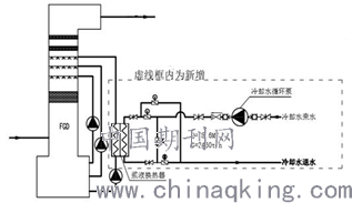 烟气冷凝器水侧方案:水侧为开式循环,冷却水采用机力通风冷却塔循环水,冷却水由电厂循环水母管引出,经烟气冷凝器与烟气换热升温后回冷却塔。全厂系统设有三台循环水泵(两运一备),保证系统正常运行。