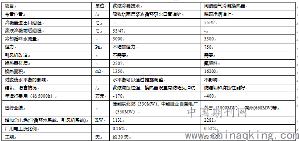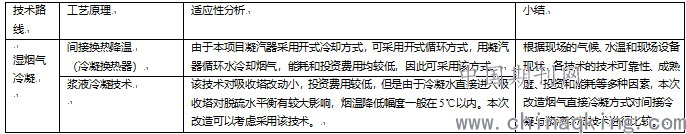 综合考虑到系统运行的可靠性、投资和运行费用,推荐采用浆液冷凝技术(方案一),间接烟气冷凝技术(方案二)作为备选方案。