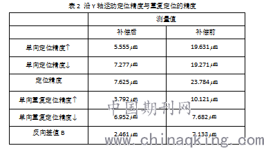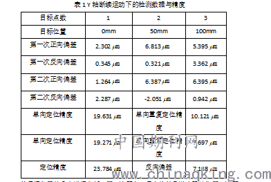 对沿Y轴反向差值Bi的均值Bz的曲线拟合进行综合分析中,其是以丝杠补偿以及间隙补偿为中心。在8个目标点之间等距选取一定数目的目标为支点。在进行拟合计算与统计分析的过程中,则需啊哟对单项平均偏差进行计算与分析。将目标点的反向差值的均值为间隙补偿表。在进行计算与分析中,具体的测试结果如下: