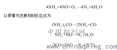 上述反应的最适宜温度为300~400℃,当温度低于300℃时,氨会被大量氧化;当温度高于400℃时,氨的热分解反应会激烈进行。影响反应速率的原因主要为反应温度、NH3/NOX摩尔比、接触时间和催化剂性能。