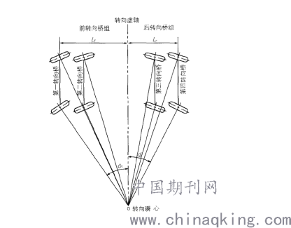 多个桥全转向,各桥存在一定的几何关系(AKERMAN定理),全轮转向时车轮绕同一转向瞬心作纯滚动。适于通过性要求高、转弯直径小的情况,各桥转角关系可根据ARKEMAN定理求得。